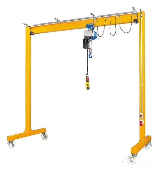 LQ-I 龙门式起重机的起重量可达500公斤,凡是采用悬挂式起重机不可能或不经济的地方都可以方便使用。龙门式起重机可以简单地拆分为几个容易运输的部分,在另一个使用的地方又能很快地装配起来,这一特点在很多场合都有益处。工字钢无轨门式起重机起重量可达500公斤。