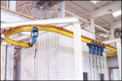 KBK-D柔性单轨悬挂起重机应用广泛、功能出众。由于所有部件都能任意地组合在一起,因此轨道走向能够根据客户车间的建筑情况灵活布置,以满足生产加工中特定产品和工作位置的特殊要求。KBK-D单轨吊的走向布置灵活:从简单的手动控制的直线轨道,直至具有大量分支的、半自动的和全自动化控制的环形轨道。单轨吊的走向布置灵活:从简单的手动控制的直线轨道,直至具有大量分支的、半自动的和全自动化控制的环形轨道。