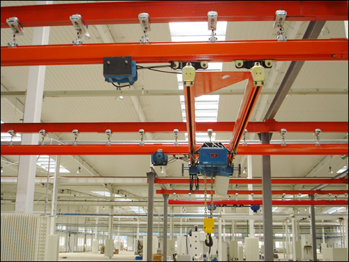 KBK-LS柔性双梁悬挂起重机由KBK标准组件组成,由于它的起升葫芦被悬挂在两个KBK主梁之间的小车架上,因此双梁悬挂起重机可以提供比单梁起重机更高的起升空间。